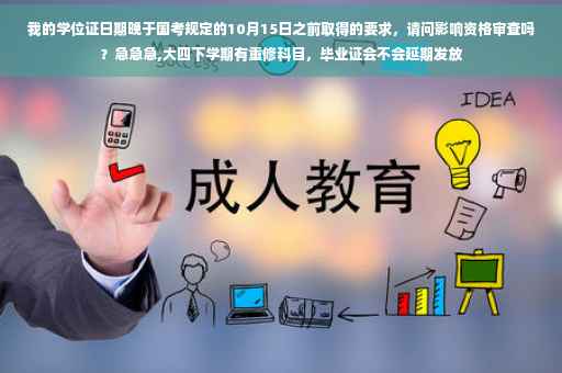重修过了就可以去找辅导员拿毕业证和学位证,这样是没有影响的,如果你的重修考试在七月份左右,过了的话最多就比别人晚拿。重修没过只能去找辅导员,我们辅导员说等下一学期再重修,过了还可以拿毕业证学位证。但是上面的日期会写你是什么时候拿的。