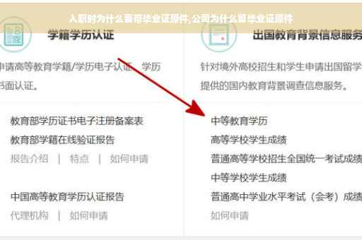 因为单位要审核求职者在登记信息中所填毕业院校和学历的真假。虽然现在也有毕业证原件造假的行为,但是毕业证复印件的真假上是很难分辨的。但近几年毕业证上网联网后,造假行为已经大为减少。