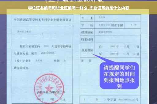 学历证书编号和学位证书编号不一样。 现在的毕业证和学位证后面几位数字都是电脑随机产生的编码,毕业证是毕业证编码,学位证是学位证编码,二者肯定不一样的,后面的顺序也没有什么规律可循。 学历证书是学制系统内实施学历教育的学校或者其他教育机构,对完成了学制系统内一定教育阶段的学习任务的受教育者所颁发的文凭。