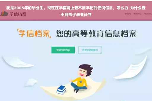 3、学生的毕业年限过短,只有在毕业后的半年以后,才可以在学信网上查询到学历信息。解决办法:1、如果查询不到的话,需要到学历认证中心提交学历认证申请,获取有报告编号的学历认证报告。2、学生的学历并没有被录入,学信网现在只能查到国家承认的各类高等教育学历证书(含学历证明书)。包括研究生、普通本专科、成人本专科(注册进度)、网络教育(注册进度)、开放教育、高等教育自学考试(注册进度)以及高等教育学历文凭考试(注册进度)等。3、学生的学历信息还没有及时被录入。若是学生是刚毕业的,或者是毕业不久的,则各地教育局上交的学历认证的信息依然没有被学信网输入系统中,自然是无法查到的。中国高等教育学生信息网 依托中心建立的集高校招生、学籍学历、毕业生就业和国家助学贷款学生个人信息一体化的大型数据仓库,开通了学历查询系统、学籍学历信息管理平台、“阳光高考”信息平台、硕士研究生网上报名和录取检查系统、国家助学贷款学生个人信息系统、学历认证网上办公系统、就业频道等多套电子政务系统和社会信息服务系统。2008年,中心基于新形势下转变政府职能,加强公共服务,全面服务大学生就业的需要,又开通了全国大学生就业公共服务立体化平台。中国研究生招生信息网最早由教育部高校学生司创立于1999年;2003年3月5日全国高等学校学生信息咨询与就业指导中心重新注册域名,并于当年11月份为90所硕士生招生单位进行了网上报名试点;2004年9月首次进行全国硕士研究生招生考试网上报名;2005年9月首次举办全国硕士研究生招生网上咨询周活动,并为全国所有招生单位实行网上报名;2006年4月开通了生源调剂系统;2006年7月5日研招网与学信网合并,域名变更,成为中国高等教育学生信息网的研招频道。2008年4月生源调剂系统升级为全国硕士生招生调剂服务系统,成为硕士生招生调剂志愿填报和录取的唯一指定平台。