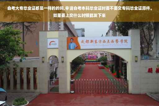 需要提交原件。一般情况下,5月办理,9月公布本科毕业证审核结果;12月办理,3月公布结果,公布之后就可以发下来专科原件了,具体时间可以咨询当地的自考主管部门、主考院校或社会助学点。