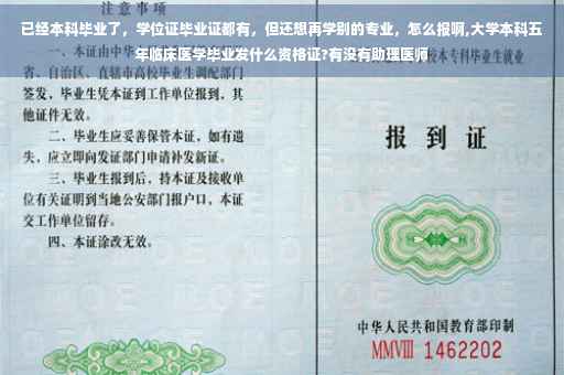 大学本科五年临床医学毕业发毕业证和学士学位证,不会发资格证的。资格证需要本科毕业一年后,在国家医学考试网报名参加全国统一的执业医师资格考试,考试通过后会发给医师资格证,在医疗机构注册后会有执业医师证。本科学历直接考执业医师,不用考助理。现在临床医学本科毕业后可以考研或者参加医师规范化培训,资格考试具体事宜可以咨询所在单位医政处。