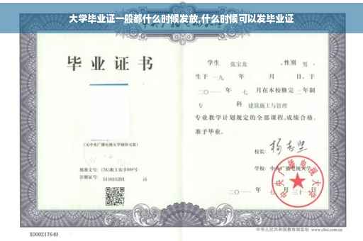 大学毕业证一般的情况下是六月底至七月初发放,由于每个学校和地区不同,毕业证书发放的时间也是相对有所不同,但总的来说会集中在6、7月份发放,如果说需要提前领取的可以向学校申请,一般在离校前一个月就把毕业证就通过教育局分发给了学校,存放在学校中。