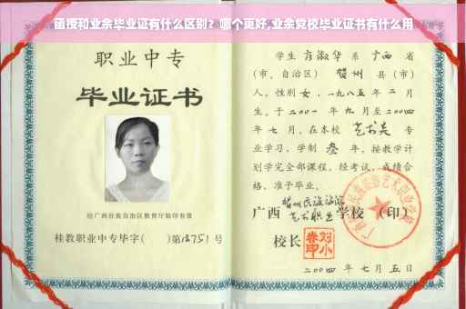 业余毕业证:业余毕业证是指通过在工作时间之外的时间进行学习、考试,获得学位证书或毕业证书。业余教育主要以晚自修和周末班为主,以实用性和便捷性强见长,适合在职工作者和学员。但是业余教育时间不固定,需要学员自行安排时间,要求学员的自律性和管理能力较强。