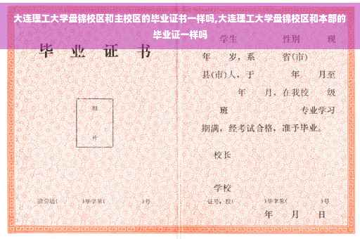 大连理工大学盘锦校区和主校区的毕业证书应该是相同的。无论是在盘锦校区还是主校区完成学业的学生,都将获得由大连理工大学颁发的统一毕业证书。