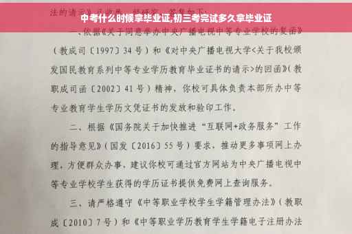 所以初中考完试一个月左右之后可以拿到毕业证。