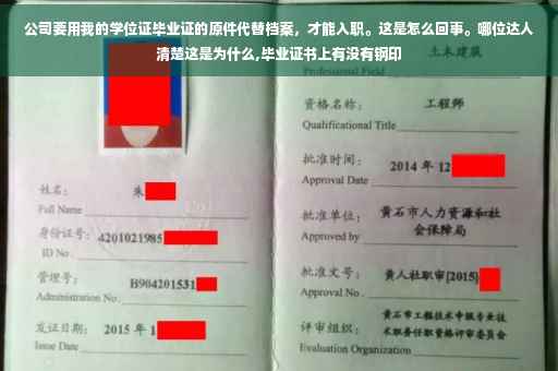你公司要求你将毕业证,专业资格证书原件交由公司保管,可能有这样一种情况,国家对一些特殊行业要进行监管,对公司内的专业人员有从业资格的要求。因此,每年要进行年检审核,其中专业技术人员的证件就是年检的重点项目,被检查公司按国家的规定应有多少专业技术人员,而这些人员的学历,职称,岗位职业技能证书就是必检材料。