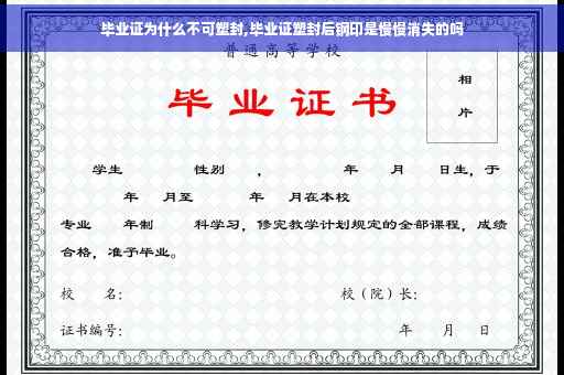 毕业证塑封后钢印不会消失,因为塑封只是将毕业证用塑料薄膜热封起来这对钢印没有影响。钢印是在毕业证上纸和照片上的字压成凹凸型,这些个字的凹凸深度是根据当时盖章压力的大小而定的。钢印一般不会消失,当然用薄膜热封也不会受到影响的。