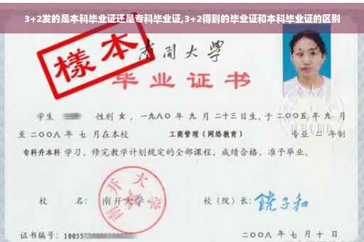 毕业证不同。1、3+2的大专成绩合格者转入高等院校完成大专学习,发大专毕业证。