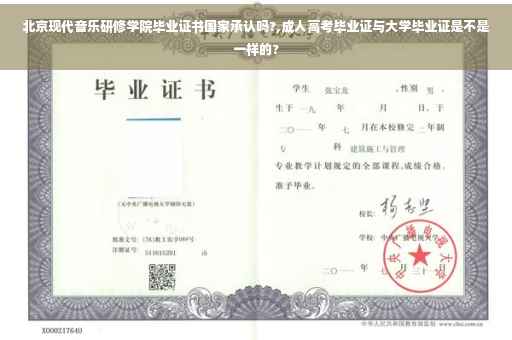 据我说知,北京现代音乐学院的毕业证目前虽然不是国家统招计划颁发的那一种,但是有专业教学还是很棒的,毕业证在业内认可程度也很高.....特别是录音专业、音乐制作专业、爵士乐及现代舞专业, 另外北京现代音乐学院还和是京四所知名院校的校外学习中心,包括中央音乐学院、中国音乐学院、中国传媒大学、北京舞蹈学院.在北音的学可以通过参加成人高考考取这四所院校的成教本科学历,成绩合格的可以获得上述四所学校的 毕业证和,符合条件的还可以获得学位证书