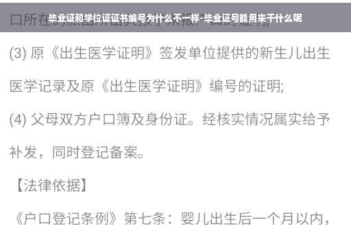 3.因为毕业证和学位证所代表的含义和目的不同,因此其证书编号也就不同,无法相同。