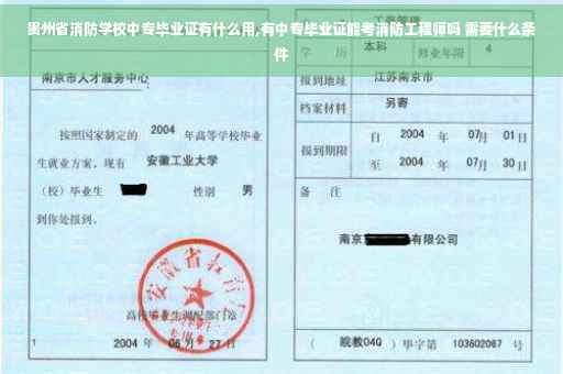 用于报考二级建造师、用于报考中级卫生院专业资格考试。贵州省消防学校中专毕业证是学校发的证明学历的证书,非常有用,毕业后可以用于报考用于报考二级建造师、用于报考中级卫生院专业资格考试等考试,考取一定的证书用于工作。