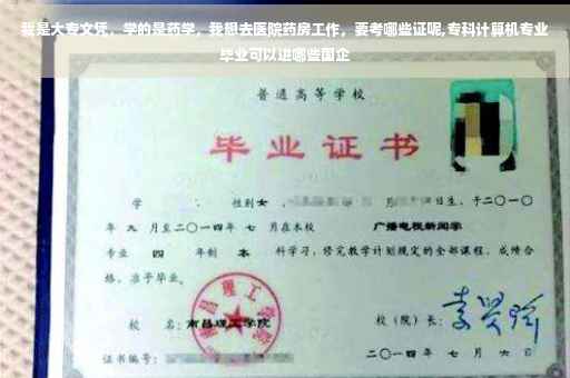 另一方面,资格证的考取,以你大专毕业为例,毕业证拿到手当年(中专毕业的也是当年)可以报名参加药学初级(士)的资格证考试,考过这个证意味着你有资格在药房工作。