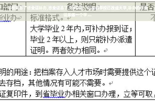 根据教育部的相关规定,大学毕业证丢失不能补办,只能到原毕业学校办教育部统一格式的毕业证明,基本上和原毕业证书有相同的效力,毕业证明上会写明你毕业的时间和原学校