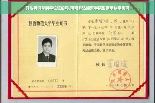 呵呵,这个问题有点不靠谱了,郑州大学升达经贸管理学院颁发的是与郑大学生一模一样的毕业证和学位证,只是这些证书上面会写有“在我校升达经贸管理学院**专业学习”字样,这就是说对于毕业证学位证来说,升达学院与郑大本部的商学院、法学院等等一样都是郑大的下属学院。其他的章和校长印章都是郑大的,完全合法的正规三本院校。