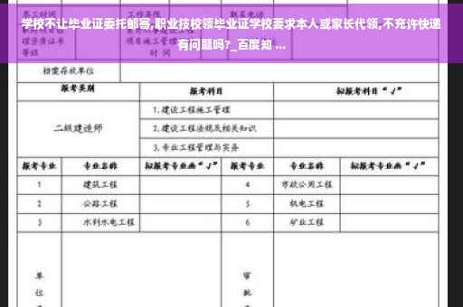 你好,很高兴为您解答问题,关于职业技校领毕业证学校要求本人或家长代领,不充许快递有问题吗这个问题,其实我觉得有一点问题,有点时候不让快递很不方便