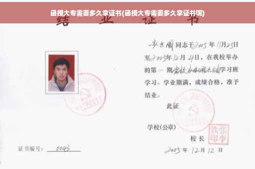 大家好,关于函授大专需要多久拿证书的问题,于是小编就整理了4个相关介绍函授大专需要多久拿证书的解答,让我们一起看看吧。