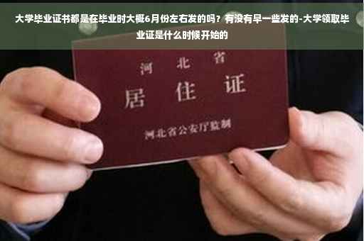 毕业证的发放情况分地区、分学校、具体情况有所不同。但总体来说会根据毕业生的离校时间而定,基本上在同一时段。一般来说,学生的毕业证会在学生毕业前1个月统计制作完毕,先是压在学校里不发。然后一般会在6月28―7月1日之间统一发放。如果毕业生需要提前领取毕业证可先向学院申请。