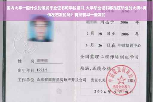 一般情况下,大学毕业证和学位证都是在6月份左右发放。