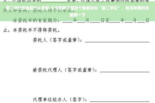 第二学位即获得第一个学位后,通过参加国家教育行政部门认可的、获得第二个学位的考试(如:高等教育自学考试、成人高考等)后,修习第二学历的课程学分修满、并通过在主考院校论文答辩合格,即可获得由主考院校颁发的毕业证,学位英语通过,达到主考院校授予学位要求,即可获得由主考院校颁发的学士学位证。其目的是为尽快培养出一批国家急需的知识面宽、跨学科的高层专门人才,与培养研究生的方式相辅相成,更好地适应经济发展需要。