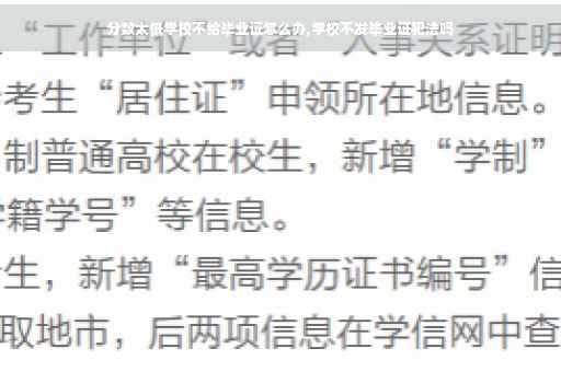 学校不发毕业证怎么办办法:向学校反映或者对学校进行举报,并与学校沟通,了解学校扣留毕业证的原因,如果学校仍扣留毕业证,可以向当地教育部门投诉,无法解决的,可以向法院起诉学校。如果你的学业成绩是合格的,没有触犯学校不给发毕业证的规定,那么可以向教育局进行投诉。