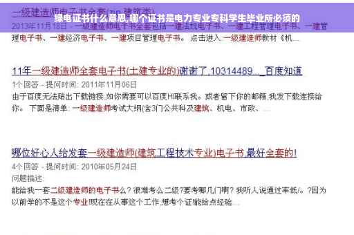 电气工程师证是电力专业专科学生毕业所必须的,电气工程师证是所有电力专业的学生都需要尽量考取的一门证,因为只有持有该证书的从业人员才能够进行电力专业监管、供配电、发输电等方面的工作,如果没有这证书的话会错过很多工作机会。
