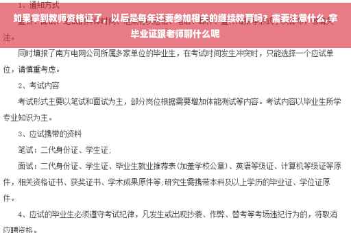 拿到教师资格证后,每年需要参加相关内容的继续教育。