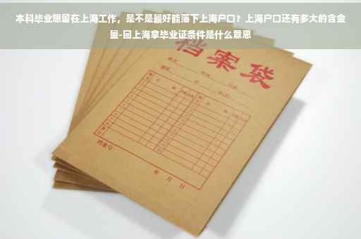 这个问题我是这样认为的,你是本科毕业想留在上海工作还想有一个上海户口,这个愿望给你赞美一下,要落下上海户口你是人才引进,单位会给你申报不会有麻烦很快报进上海户口。不是人才引进你要留在上海工作要积分制达到标准你就会落户上海。上海户口含金量高简称黄金户口,你不要小看上海户口有些人不在意上海户口,但一到关健时刻你没有上海户口会到处碰壁,我实话实讲;有些单位招工只招有上海户口的上海人,你结婚一方配偶是上海人那你十年到期可以享受上海户口,子女享受本地上海户口上幼儿园,上小学中学直到上大学,还有享受低保代遇政策,生大病办大病医保在上海退休养老金高。总之,一句话,有些人不在乎上海户口到关健时刻不能够享受上海优惠代遇,这个时候后悔来不及你要想上海户口赞美你一下。
