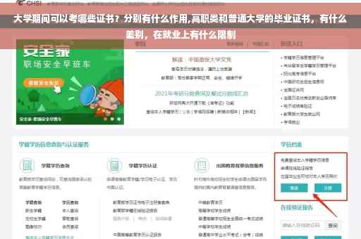 而学位证则更加严格一点,除了各科不挂科之外,还要完成毕业论文的设计与答辩,通过了才能获得学位证。而且有的院校还要求学生平均学业绩点达到一个值(比如1.8),大学期间没有作弊记录,才能颁发学位证。所以要获得毕业证和学位证也是要努力才行哦。
