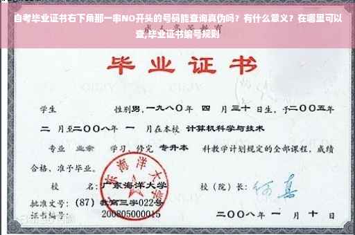 自考毕业证NO后面的编码只是方便教务内部管理,对外没有什么实际的意义。如果要在学信网查询证书的真假,应该查询证书编号。证书编号就和我们身份证号码一样,都是唯一的,并且对应唯一的信息,不会存在信息重叠。