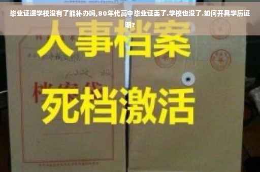 如果您丢失了80年代的高中毕业证书并且学校也不存在了,您可以联系当地的教育行政部门或高中所在地的教育部门,查询您的毕业档案是否还存在。如果档案存在,您可以向教育部门申请开具学历证明。如果档案不存在,您可以联系当地的教育主管部门进行咨询并寻求帮助。