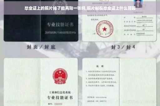 毕业证上照片掉了,一般不可以换张照片贴上去,因为照片上有钢印。如果需要更换照片,要到学校开个证明,到教育局补个章即可。 毕业证是学生通过系统的学习,修完学校所安排的全部课程并成绩合格,由办学机构颁发的用于证明学习经历的书面凭证。 毕业证分为学历教育及非学历教育二种。非学历的主要是培训类的证书。学历教育的毕业证又分为国民教育系列于非国民教育系列。非国民教育系列的主要是无统招资格的民办学校。国民教育系列是指通过电子注册学籍,国家承认的学历,是现有教育的主体。