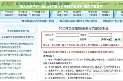 1、报考成人高考的话,也就是当年10月考试,第二年3月份入学,按照成人高考3年的学制算的话,要3年半的时间。 也就是第四年年底就能拿到毕业证书。 2、远程教育的秋季班,当年9月份入学,学制2年半,也就是第三年年底就能拿到毕业证书。 成人本科意思就是成年人通过高升本或者是专升本的考试进入本科大学的一种学习方式。这个只是成人教育中其中一个教育模式,是国家承认,企业认可的,在考生通过本科的学习后,成绩合格者准予颁发毕业证书。