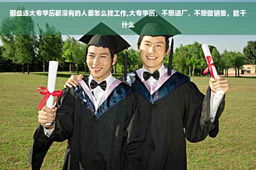 大专学历,不想进工厂,不想做销售,能干什么?那只有自己创业。不过创业有风险。那干什么?在我看来,当今社会,中国又是人口大国,做为人口大国,市场竞争激烈,特别是人才竟争。要面对现实,结合实际。不要人挑工作,而是工作挑人。所以遇到什么工作,就干什么工作,就干好什么工作,才能适应社会,适者生存嘛!