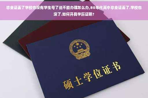 如果您丢失了80年代的高中毕业证书并且学校也不存在了,您可以联系当地的教育行政部门或高中所在地的教育部门,查询您的毕业档案是否还存在。如果档案存在,您可以向教育部门申请开具学历证明。如果档案不存在,您可以联系当地的教育主管部门进行咨询并寻求帮助。