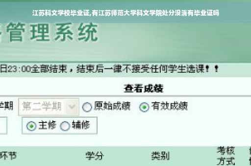 没有。在校期间被行政拘留或构成刑事犯罪者,因违反校规校纪受纪律处分毕业前未能解除者,毕业班学生受记过及以上处分者,学业成绩未达到相关规定要求者,都是没有江苏师范大学科文学院毕业证的,有江苏师范大学科文学院处分是没有没消有毕业证的。江苏师范大学坐落于五省通衢的国家历史文化名城——江苏省徐州市。是教育部、财政部"国培计划"9所实施高校之一,"卓越教师培养计划"高校之一,江苏省和徐州市重点建设的省属重点大学,也是教育部与江苏省人民政府共建高校。