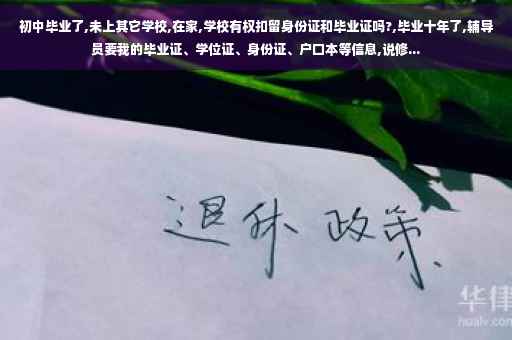 初中毕业了,没有上其他的学校,我任何我认为任何学校没有权利扣留你的身份证和毕业证。你可以向有关部门反映。