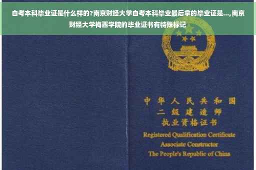 自考本科毕业证是统一的,与南京财经大学的毕业证不一样,自考毕业证书上有二个章,一个是南京财经大学的公章,另一个是江苏自考委员会的公章。与统招的毕业证书不一样,是二个公章,统招生毕业只有南京财经大学的章。