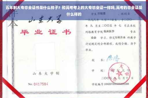 3,不同点:毕业证内容有一点区别,主要体现在学制上,高中参加高考的大专,内容里面只有“三年制专科”字样;五年制毕业证上会注明“初中起点五年制专科”字样,注意关键在于“初中起点”几个字,用人单位一看毕业证就知道是初中毕业读的五年制大专。