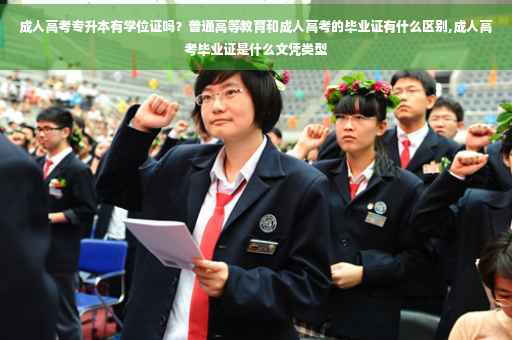 成人专升本有学士学位证,不过要单独考,跟毕业证不是一起发,我是医学专业,考专业课和英语,普通高等教育是全日制的,是第一学历,成人高考虽然已经全国推广,但是有些用人单位会优先考虑全日制的
