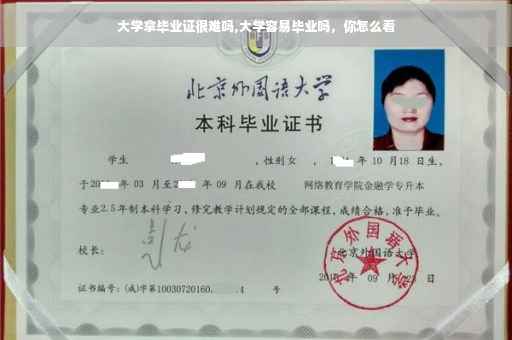 不难啊,只要你好好的遵守纪律,还有考试前认真复习,一般都可以顺利拿到毕业证,除了毕业证不是还有学位证,这个比较难一点,对成绩绩点有要求,发正这两个证努力一点都不难。