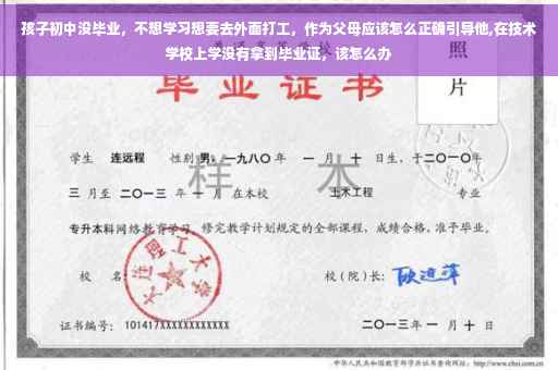 没有取得毕业证一定有其原因,现在的技术学校,因为成绩不合格而不发毕业证的很少,我想题主之所以没取得毕业证一定是因为违犯了学校纪律(如打架),或是长期不上学(或逃课)达不到毕业所规定的学习时间。