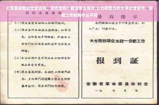 再次回归主题,公办与民办大学的毕业证书真正的区别是在它自身所带的价值上,而正是因为价值的不同带来的是找工作时企业的认可度和欢迎度的不同,公办学校毕业的学生受欢迎一点、企业的关注度多一点,而民办学校毕业的学生只能排在后一位,作为第二选择目标。所以说虽说都是拿着毕业证书找工作,但是可能因为毕业证书性质的不同给自己的工作带来不同的影响、限制或者是帮助。