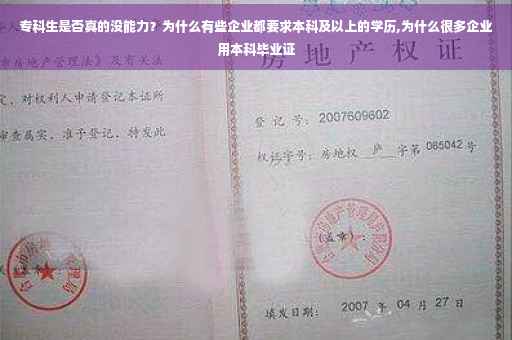 易中天老师说:“怀才就像怀孕。日子久了,别人自然就看出来了。”我觉得很有道理,是金子总会发光,有能力的人到哪里都能脱颖而出。但是,是不是学历就不重要了?并不是,学历是你敲门砖,入场券!很多企业家都会告诉你,他们的企业不在乎学历,只在乎能力。但是你看看世界五百强,他们会到专科院校搞招聘会吗?他们为什么对清华北大趋之若鹜?所以学历虽然不能代表能力,但是却能决定你起点的高低。在世界五百强的发展前景当然要比在乡镇小作坊要好得多,这是毋庸置疑的。所以能力是很重要的,但是学历也是不可缺少的。我们虽然不能说专科的能力一定比本科差,一定比985,211,学校差!但是从普遍来说,从比例来说,确实是这样。有个段子说,现在走在马路上掉下一块牌子,砸中十个人,掀开一看,全是大学生,八个是本科!虽然夸张,但却说明一个事实,现在人的学历层次越来越高,企业选人的标准也会越来越高。所以你如果只有专科学历,即使能力很强,起点也会比别人低,要取得更好的成就只能付出比别人更多的努力了!