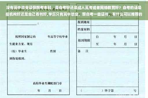 自考的话难度太大。不建议,你也是高中没有毕业,基础不是很好,自考的话科目繁多,十五门左右,每次都要达到60分才能通过。费时费力。拿到毕业证也是和函授远程本科的证书一样在学信网查询。