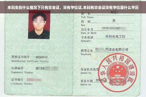 本科生可以分为两种,一种是第一学历是本科的本科生,第二种是专升本的本科生。这两种本科生,都有可能存在这么一种现象,那就是在毕业后只拿到毕业证,而拿不到学位证。