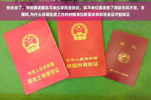 法律上性质不一样。取得毕业证之前,你的身份是学生,不可以雇佣你作全职正式员工的,所谓的工作的性质可以是学生实习,不是真正的工作,可以不签雇佣合同,也不算是试用期。毕业证是你结束学生身份的证明文件,向公司交验之后,证明你已经不是学生,要工作的话,应当签雇佣合同,包括试用期。