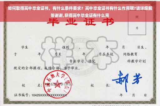 高中毕业证在升学、出国留学和找工作时可以作为证明文件。
