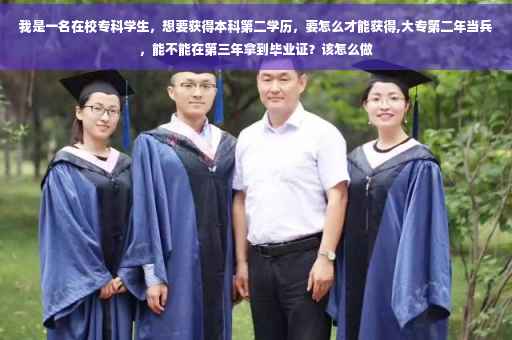 有些地方院校的政策是大专第三年入伍当兵,服役年限可算作实习期。也就是说,大专第三年开始时入伍当兵,等到你在部队服役满一年后,就可以像所在院校申请领取大专毕业证书了。而大专第二年在读入伍时享受不到这个政策。