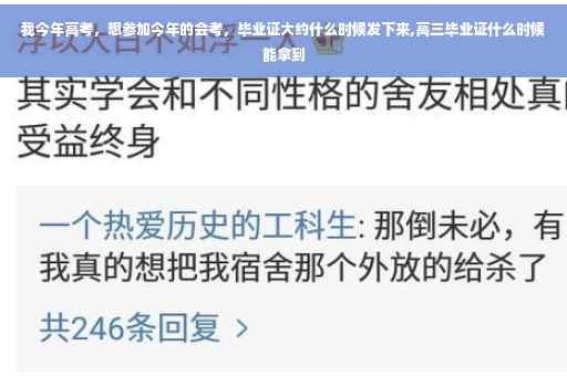 谢谢邀请!不知道你问的是哪个省情况,以山东为例吧。高三的会考已经全部结束,会考时间是每年的12月和6月,如果你的成绩全部合格-,其等级是A、B、C、D四个等级,只要你的成绩是C级以上,高中毕业证会在高考前发下来,不会影响你的高考。但你说你想参加今年的会考,今年的会考在6月份,今年的高考结束之后,毕业证肯定是没有的,只能等到明年随着下届毕业生一起发放。高中毕业证还是很重要的,假如你有出国学习的想法,把高中毕业证存放好。希望对你能有所帮助